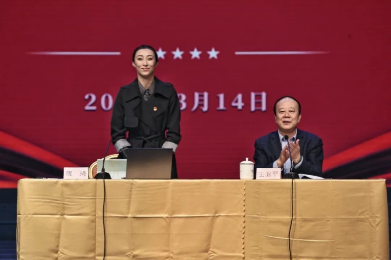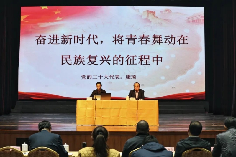 輔導(dǎo)報告會上,康琦以“奮進新時代,將青春舞動在民族復(fù)興的征程中”為題,從高舉中國特色社會主義偉大旗幟,為全面建設(shè)社會主義現(xiàn)代化國家而團結(jié)奮斗和推進文化自信自強、鑄就社會主義文化新輝煌兩個方面進行了系統(tǒng)宣講,詳細生動地闡釋了黨的二十大的豐富內(nèi)涵和重大意義,并結(jié)合自身工作實際,就如何落實黨的二十大報告中對文藝工作的新部署新要求作了分享。