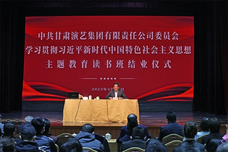 4月27日,甘肅演藝集團(tuán)黨委學(xué)習(xí)貫徹習(xí)近平新時代中國特色社會主義思想主題教育讀書班舉行結(jié)業(yè)式。集團(tuán)黨委書記、董事長、主題教育領(lǐng)導(dǎo)小組組長陳其銀主持會議并講話。集團(tuán)黨委領(lǐng)導(dǎo)班子成員,全體黨員、干部參加了結(jié)業(yè)式。
