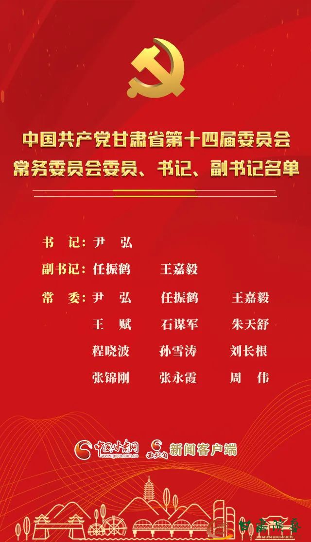 中國共產(chǎn)黨甘肅省第十四屆委員會常務(wù)委員會委員、書記、副書記名單