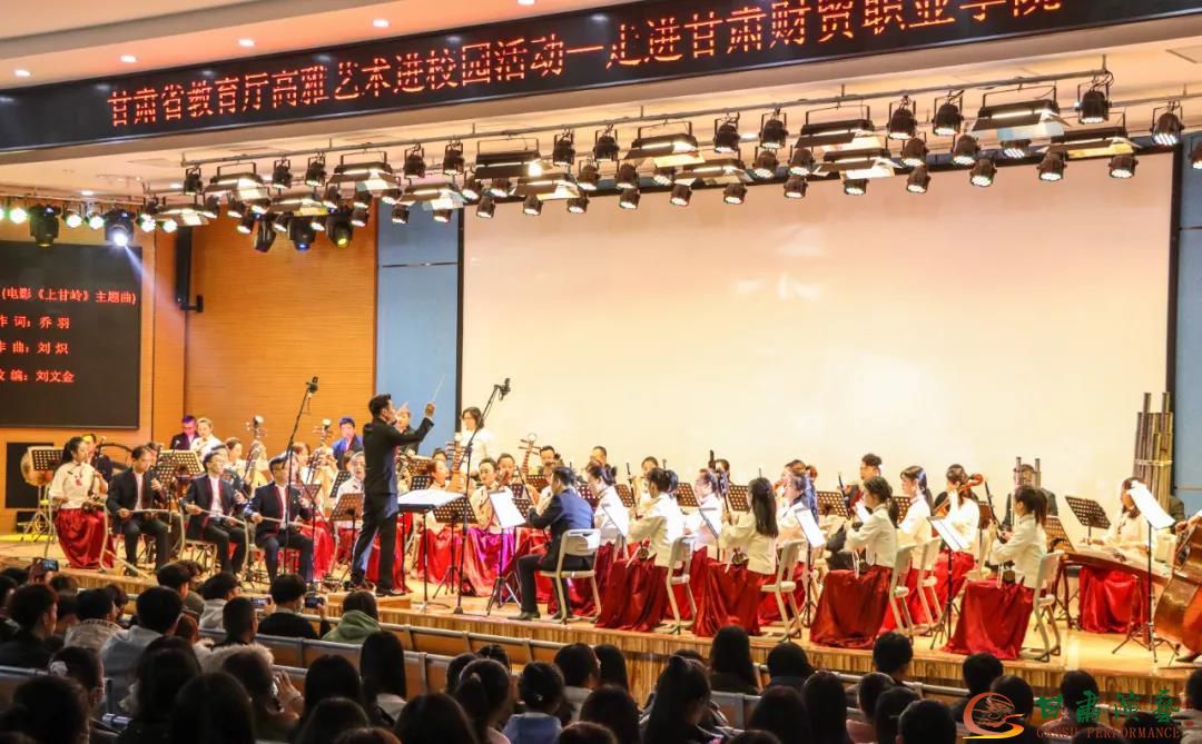 為將高雅藝術(shù)融入校園文化建設(shè),繁榮學(xué)校校園文化,提升師生藝術(shù)素養(yǎng),11月24日下午,2020年“甘肅省教育廳高雅藝術(shù)進校園”活動來到鐘靈毓秀的甘肅財貿(mào)職業(yè)學(xué)院,甘肅演藝集團歌舞劇院民族交響樂團的演奏家們用一臺精彩絕倫的中外影視經(jīng)典民族交響音樂會《歲月留聲》帶領(lǐng)全體師生共同感受民樂魅力,重溫經(jīng)典旋律。本次活動由甘肅省教育廳主辦,甘肅演藝集團承辦。