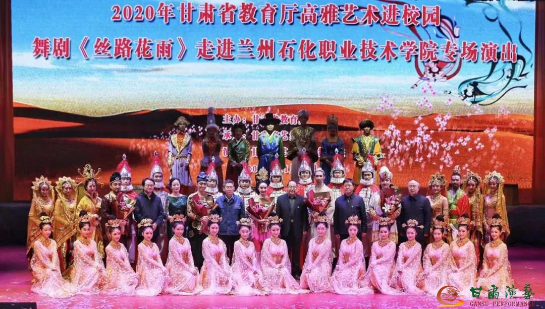 當(dāng)日晚上,甘肅演藝集團(tuán)歌舞劇院的舞蹈演員們用精湛的表演將被譽(yù)為“東方的《天鵝湖》”的中國(guó)經(jīng)典舞劇《絲路花雨》在蘭州石化職業(yè)技術(shù)學(xué)院完美再現(xiàn)。獨(dú)創(chuàng)的“S”形舞姿,親密無(wú)間的父女情結(jié),感人至深的中外人民友誼讓廣大師生既領(lǐng)略到敦煌文化博大精深,又感受到古絲綢之路的文化基因,在增強(qiáng)民族自豪感的同時(shí),堅(jiān)定了文化自信。精妙絕倫的表演扣人心弦,謝幕環(huán)節(jié)一浪高過一浪的掌聲和歡呼聲將氣氛推向最高潮。