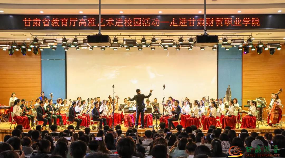為將高雅藝術(shù)融入校園文化建設(shè),繁榮學(xué)校校園文化,提升師生藝術(shù)素養(yǎng),11月24日下午,2020年“甘肅省教育廳高雅藝術(shù)進(jìn)校園”活動(dòng)來(lái)到鐘靈毓秀的甘肅財(cái)貿(mào)職業(yè)學(xué)院,甘肅演藝集團(tuán)歌舞劇院民族交響樂(lè)團(tuán)的演奏家們用一臺(tái)精彩絕倫的中外影視經(jīng)典民族交響音樂(lè)會(huì)《歲月留聲》帶領(lǐng)全體師生共同感受民樂(lè)魅力,重溫經(jīng)典旋律。本次活動(dòng)由甘肅省教育廳主辦,甘肅演藝集團(tuán)承辦。