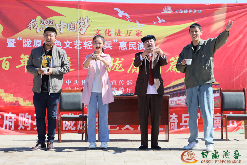 筑夢隴原,踏浪向前。2021年9月15日至16日,由甘肅省委宣傳部,甘肅省文化和旅游廳主辦,甘肅演藝集團承辦,甘肅演藝集團話劇院(甘肅兒童劇院)負責演出的“慶百年華誕譜隴原新篇”——“我們的中國夢”文化進萬家暨“隴原紅色文藝輕騎兵”惠民演出來到了武威市民勤縣,為民勤縣大灘鎮(zhèn)、夾河鎮(zhèn)、重興鎮(zhèn)下案新村、沙井子民俗村的父老鄉(xiāng)親們呈現(xiàn)了四場精彩的綜藝節(jié)目。