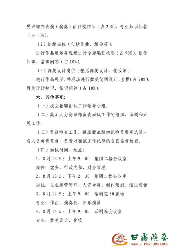甘肅演藝集團(tuán)關(guān)于公布2020年公開招聘工作中參加面試、專業(yè)測試人員相關(guān)事宜的通知