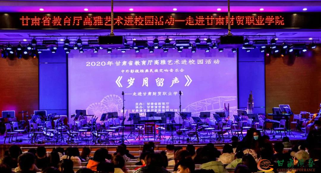 為將高雅藝術(shù)融入校園文化建設(shè),繁榮學(xué)校校園文化,提升師生藝術(shù)素養(yǎng),11月24日下午,2020年“甘肅省教育廳高雅藝術(shù)進(jìn)校園”活動(dòng)來(lái)到鐘靈毓秀的甘肅財(cái)貿(mào)職業(yè)學(xué)院,甘肅演藝集團(tuán)歌舞劇院民族交響樂團(tuán)的演奏家們用一臺(tái)精彩絕倫的中外影視經(jīng)典民族交響音樂會(huì)《歲月留聲》帶領(lǐng)全體師生共同感受民樂魅力,重溫經(jīng)典旋律。本次活動(dòng)由甘肅省教育廳主辦,甘肅演藝集團(tuán)承辦。