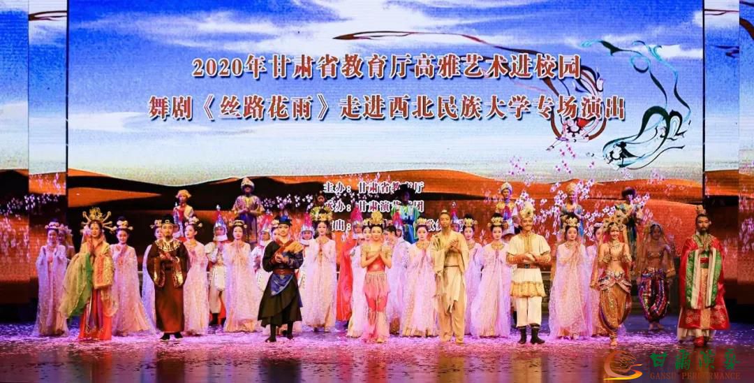 11月21日,由甘肅省教育廳主辦,甘肅演藝集團承辦2020年“甘肅省教育廳高雅藝術進校園”活動——中國經(jīng)典舞劇《絲路花雨》來到了西北民族大學,甘肅演藝集團歌舞劇院的演員們帶領現(xiàn)場師生走進傳統(tǒng)經(jīng)典,品味多彩絲路。