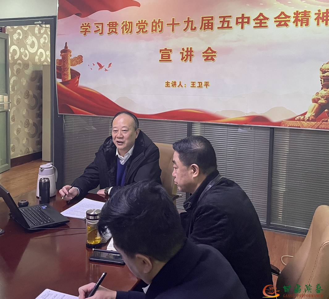 為了推動學習貫徹黨的十九屆五中全會精神持續(xù)深入,積極落實甘肅演藝集團任務部署。2020年12月28日上午,甘肅演藝集團黨委委員、副總經(jīng)理王衛(wèi)平同志到甘肅演藝集團秦腔藝術劇院,為院團全體黨員和中層干部進行了十九屆五中全會主題黨課的宣講。會議由甘肅演藝集團秦腔藝術劇院黨總支書記、院長崔華功主持,院團領導班子和全體黨員干部、入黨積極分子等近30人參加了會議。