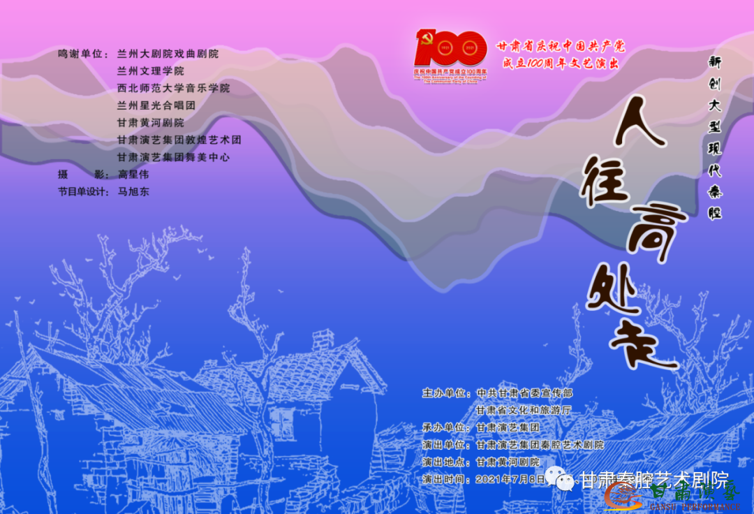 在慶祝中國(guó)共產(chǎn)黨成立100周年和脫貧攻堅(jiān)戰(zhàn)取得全面勝利之際,由中共甘肅省委宣傳部、甘肅省文化和旅游廳主辦,甘肅演藝集團(tuán)承辦,甘肅演藝集團(tuán)秦腔藝術(shù)劇院新創(chuàng)排的大型秦腔《人往高處走》,將于7月8日、9日、10日晚8:00時(shí),在甘肅黃河劇院隆重上演。