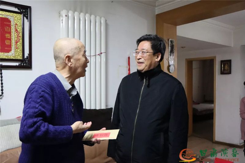2022年1月26日下午,甘肅演藝集團黨委書記、董事長陳其銀,黨委辦公室主任胡慶昭、敦煌藝術團黨總支書記、團長吳雪林等一行 8人來到敦煌藝術團老黨員傅鐵,困難職工高冬梅,參加北?!逗=z首港》演藝項目受傷演員常亞輝家中慰問,并向他們送上新春祝福。