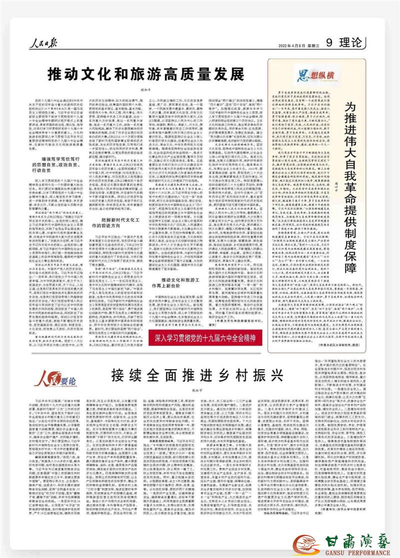 中國特色社會主義是全面發(fā)展、全面進(jìn)步的偉大事業(yè),沒有社會主義文化繁榮發(fā)展,就沒有社會主義現(xiàn)代化。新征程上,我們要堅(jiān)持以習(xí)近平新時代中國特色社會主義思想為指導(dǎo),深入學(xué)習(xí)貫徹黨的十九屆六中全會精神,扎實(shí)推進(jìn)社會主義文化強(qiáng)國建設(shè),推動旅游業(yè)高質(zhì)量發(fā)展。