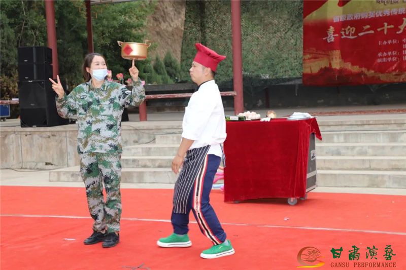 奮進新征程,建功新時代,在喜迎省第十四次黨代會的濃厚氛圍中,由省委宣傳部、省文化和旅游廳主辦,甘肅演藝集團承辦,來自敦煌藝術團的“文藝輕騎兵”走進城關區(qū)民兵訓練基地,與正在進行訓練的民兵們歡聚一堂、互動娛樂,為大家?guī)砹艘粓鼍实囊暵犑⒀纾蜕狭恕岸宋绻?jié)”的祝福,受到大家的熱烈歡迎和贊譽。