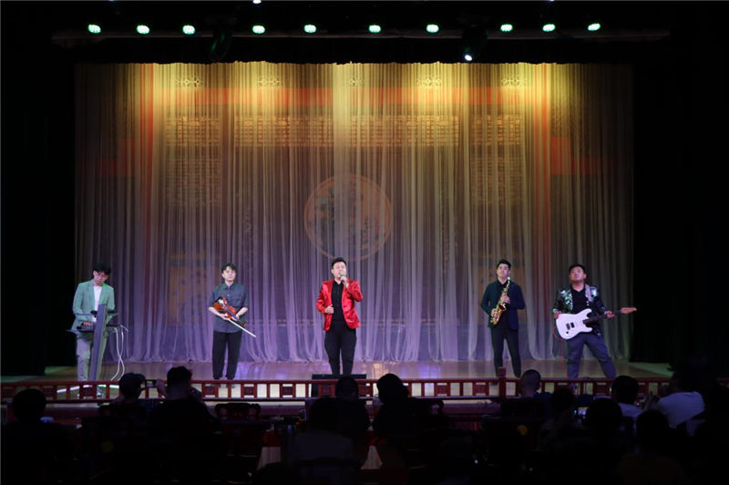 演出在舞蹈《星耀敦煌》中拉開序幕,緊接著女生獨唱《幸福中國一起走》、二胡重奏《高樓萬丈平地起》、相聲《說唱藝術(shù)》、七音樂隊《沒有共產(chǎn)黨就沒有新中國》、魔術(shù)《麗人行》、京劇《三家店》《智取威虎山》、小品《回家》、雜技《頂壇》《草帽》《鉆桶》、音樂快板《習總書記來咱布楞溝》等多種形式的節(jié)目繼而登場,讓觀眾目不暇接,最后歌伴舞《復興的力量》將演出氣氛推向高潮,演出在觀眾經(jīng)久不息的掌聲中圓滿謝幕。