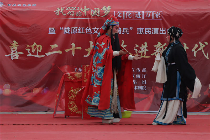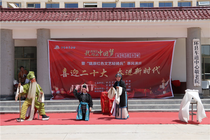 2022年6月8日,甘肅演藝集團2022“我們的中國夢”——文化進萬家暨隴原“紅色文藝輕騎兵”秦腔藝術(shù)劇院小分隊來到了幫扶點環(huán)縣車道鎮(zhèn),在駐村工作隊的積極銜接下和鎮(zhèn)黨委大力支持下,先是在車道鎮(zhèn)中心敬老院開展了“一行動一活動”關(guān)愛老人慰問演出活動,隨后在鎮(zhèn)中心廣場為當(dāng)?shù)厝罕妭儷I上了精彩紛呈的秦腔折子戲。