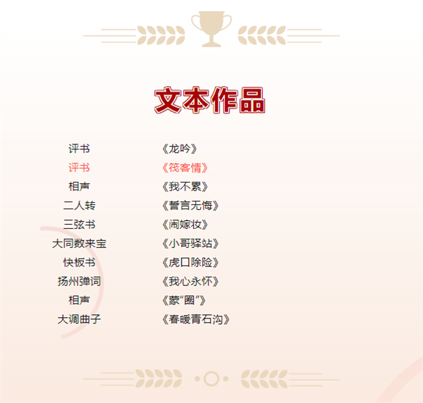 為深入貫徹落實(shí)習(xí)近平新時(shí)代中國(guó)特色社會(huì)主義思想,全面學(xué)習(xí)把握落實(shí)黨的二十大精神,充分展示廣大曲藝工作者聽黨話、感黨恩、跟黨走的精神風(fēng)貌,根據(jù)中國(guó)曲協(xié)工作部署,《曲藝》雜志社面向全國(guó)廣大曲藝工作者和愛好者開展了“喜慶二十大 奮進(jìn)新征程”優(yōu)秀曲藝作品征集活動(dòng)。