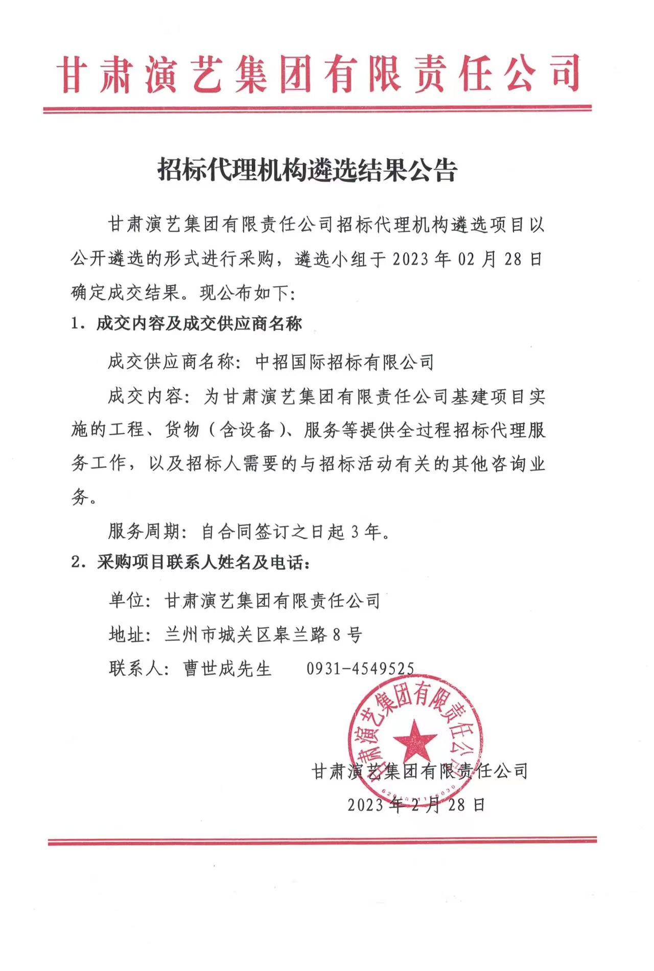 招標代理機構(gòu)遴選結(jié)果公告