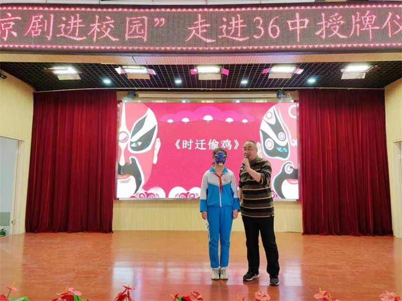敦煌藝術(shù)團(tuán)黨總支書記、團(tuán)長(zhǎng)許蕊代表敦煌藝術(shù)團(tuán)向全體師生表示,戲曲是我國(guó)傳統(tǒng)文化的瑰寶,是無(wú)形的文化遺產(chǎn),戲曲以優(yōu)美動(dòng)聽的唱腔,豐富多彩的表演,維妙維俏的人物形象,跌宕起伏的故事情節(jié)打動(dòng)人心。三十六中與敦煌藝術(shù)團(tuán)共建“藝術(shù)教育實(shí)踐基地”,能夠培養(yǎng)學(xué)生對(duì)京劇藝術(shù)的興趣,了解京劇藝術(shù)知識(shí),希望同學(xué)們能夠愛上京劇,愛上我們的優(yōu)秀中華傳統(tǒng)文化。