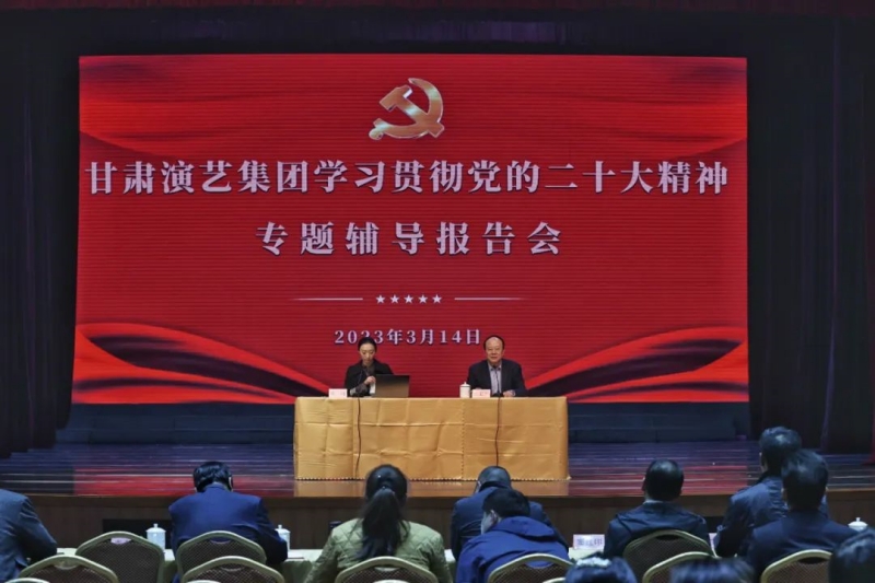 為深入學(xué)習(xí)貫徹黨的二十大精神,3月14日,甘肅演藝集團(tuán)組織開(kāi)展了學(xué)習(xí)貫徹黨的二十大精神專題輔導(dǎo)報(bào)告會(huì)。黨的二十大代表、歌舞劇院二級(jí)演員、民族舞劇《絲路花雨》第21位“英娘”扮演者康琦作專題輔導(dǎo)報(bào)告,甘肅演藝集團(tuán)黨委委員、副總經(jīng)理王衛(wèi)平主持會(huì)議。