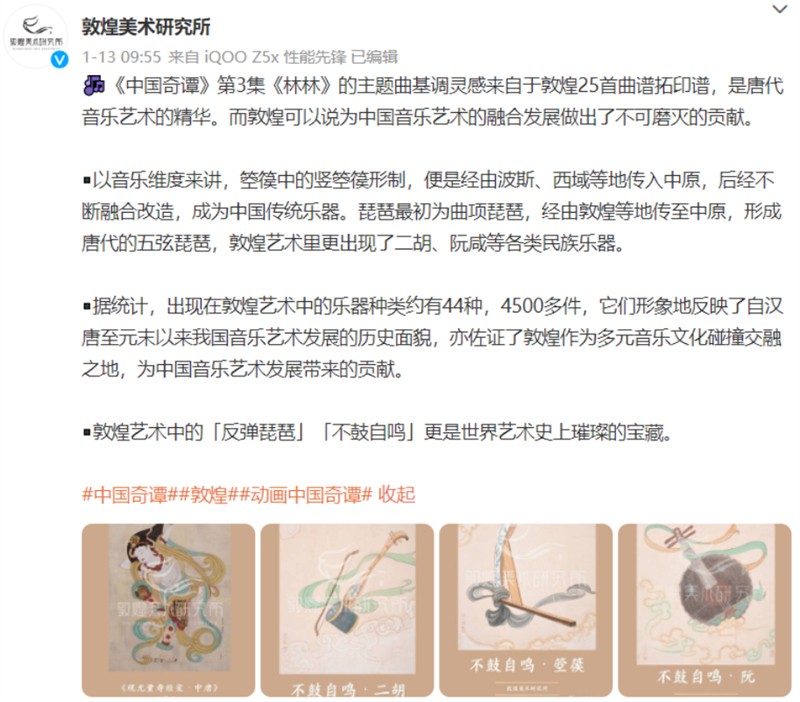 還有來(lái)自敦煌古樂(lè)器和曲譜的韻味
