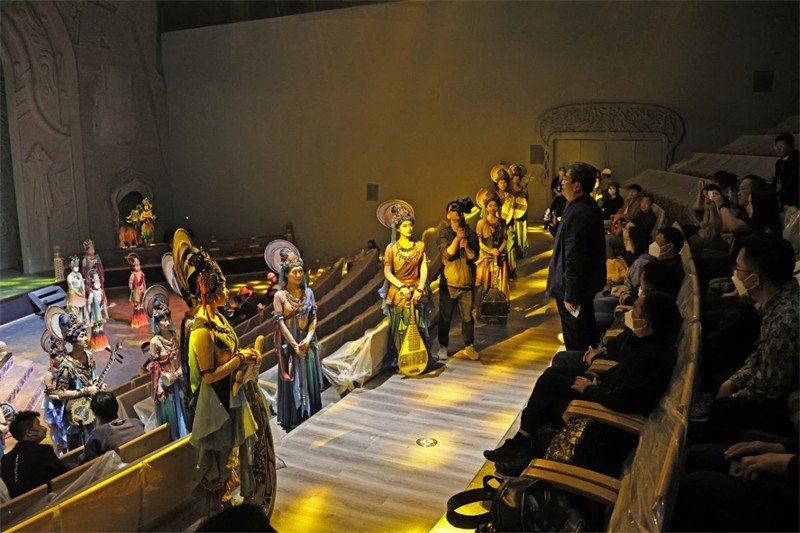 五天時(shí)間里陳其銀一行深入樂(lè)動(dòng)敦煌劇場(chǎng)、上元市集詳細(xì)了解項(xiàng)目進(jìn)展情況,實(shí)地查看了項(xiàng)目建設(shè)現(xiàn)場(chǎng)及劇場(chǎng)舞臺(tái)裝臺(tái)情況,并觀看了節(jié)目排練預(yù)演,與文旅公司領(lǐng)導(dǎo)就項(xiàng)目進(jìn)展情況進(jìn)行了深入溝通,聽(tīng)取了項(xiàng)目建設(shè)和運(yùn)營(yíng)相關(guān)工作匯報(bào),詳細(xì)詢問(wèn)了聯(lián)排關(guān)鍵節(jié)點(diǎn)和主要運(yùn)營(yíng)指標(biāo),探討交流項(xiàng)目建設(shè)進(jìn)展中存在的問(wèn)題,研究解決措施。并提出了指導(dǎo)意見(jiàn)和具體要求。