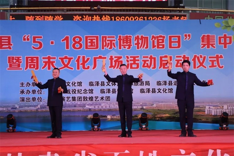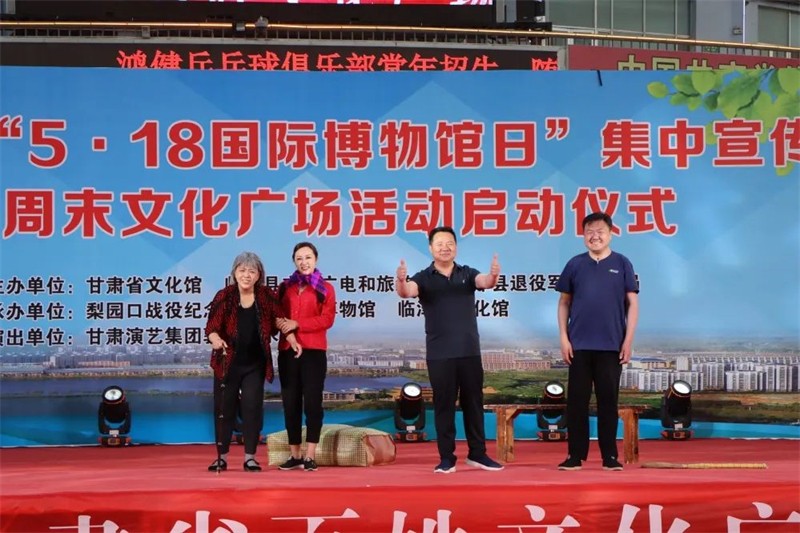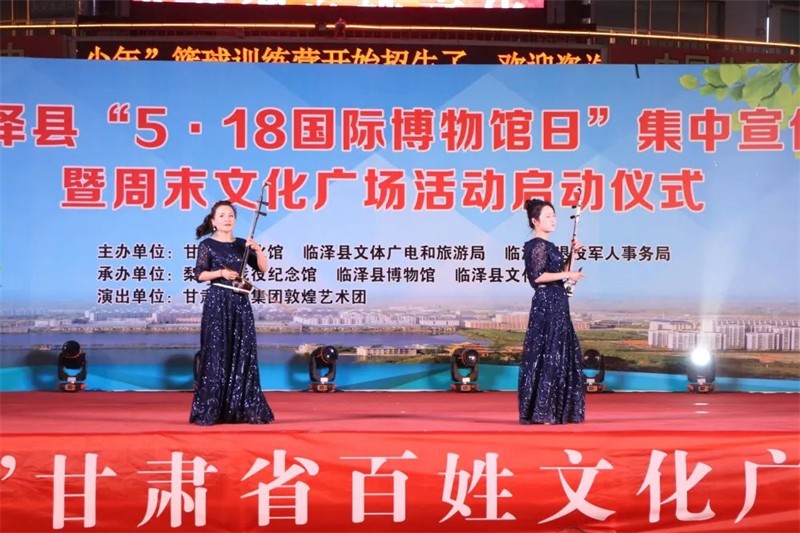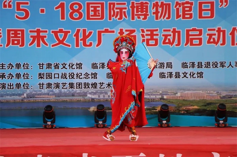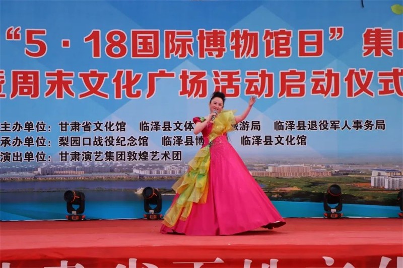 在“5·18國際博物館日”當(dāng)天,由甘肅省文化館、臨澤縣文體廣電和旅游局、臨澤縣退役軍人事務(wù)局主辦,梨園口戰(zhàn)役紀(jì)念館、臨澤縣博物館、臨澤縣文化館承辦的“大地歡歌”甘肅省百姓文化廣場(chǎng)惠民演出暨臨澤縣周末文化廣場(chǎng)啟動(dòng)儀式在張掖市臨澤縣舉行。甘肅演藝集團(tuán)敦煌藝術(shù)團(tuán)作為演出單位,為當(dāng)?shù)厝罕娝蜕狭艘粓?chǎng)精彩紛呈的文藝演出。