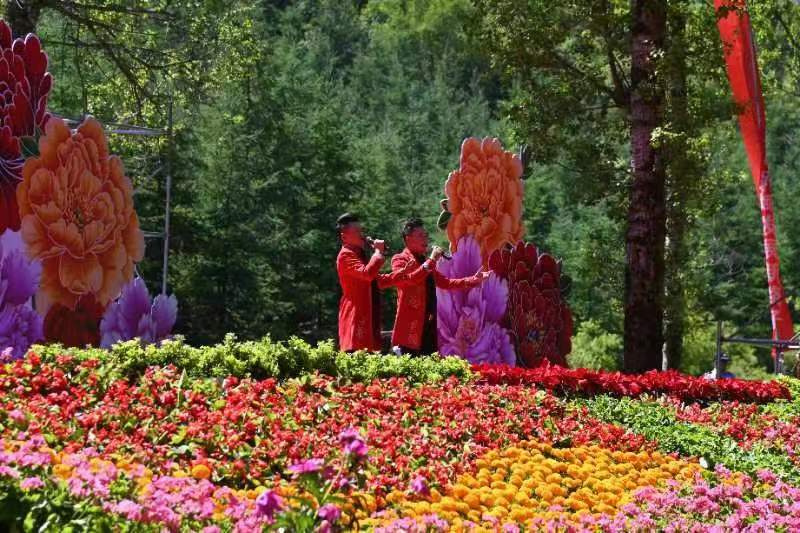 陜西、四川、重慶、內(nèi)蒙古、貴州、云南、廣西等西部七?。▍^(qū)、直轄市)民歌歌手,臨夏州,和政縣演員在和政縣松鳴巖景區(qū)花兒大舞臺(tái)開展民歌演出活動(dòng)。