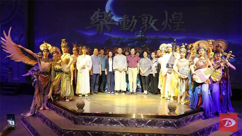演出結(jié)束后,唐國強(qiáng)一行同演職人員合影留念,并對《樂動敦煌》劇目給予高度評價(jià)。唐國強(qiáng)表示,《樂動敦煌》劇目具有國際化水平,在劇本構(gòu)思、音樂編曲、舞蹈編排、服裝造型、舞美燈光設(shè)計(jì)等方面精巧構(gòu)思、匠心呈現(xiàn)。希望演職人員能夠傳承古人先賢留下來的百折不撓、堅(jiān)韌不拔的精神,再接再厲,將節(jié)目越演越好,走出敦煌,讓更多觀眾朋友近距離感受敦煌文化的壯闊盛景和恢宏氣勢。