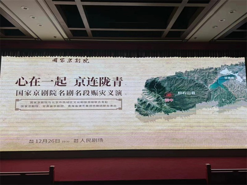 2023年12月18日23時59分,甘肅臨夏州積石山縣發(fā)生6.2級地震,甘肅和青海部分地區(qū)受災(zāi)嚴(yán)重,災(zāi)情牽動著社會各界的心。為支援甘肅和青海受災(zāi)地區(qū)重建,12月26日晚在北京人民劇場,國家京劇院與北京市西城區(qū)文化和旅游局聯(lián)合發(fā)起“心在一起 京連隴青——國家京劇院名劇名段賑災(zāi)義演”活動。甘肅演藝集團(tuán)旗下京劇團(tuán)積極參加義演活動,為災(zāi)區(qū)群眾盡自己一份綿薄之力。