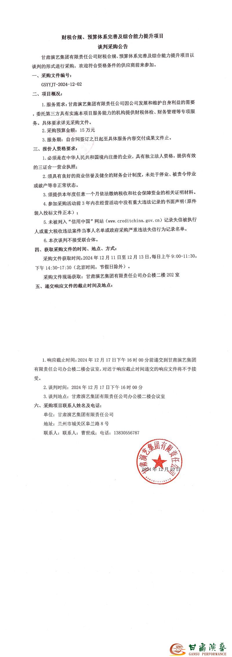 財稅合規(guī)、預(yù)算體系完善及綜合能力提升項目談判采購公告