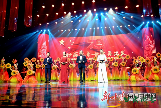 新甘肅客戶端蘭州訊(新甘肅·每日甘肅網(wǎng)記者金奉乾 實(shí)習(xí)生王飛)70年風(fēng)雨兼程,70載春華秋實(shí)。9月28日晚8時,由甘肅省委宣傳部、甘肅省文旅廳主辦,甘肅演藝集團(tuán)承辦的“壯麗70年·甘肅再出發(fā)”甘肅省慶祝中華人民共和國成立70周年文藝晚會在甘肅大劇院精彩上演。省委、省人大、省政府、省政協(xié)主要領(lǐng)導(dǎo)和社會各界群眾代表一起觀看了演出。
