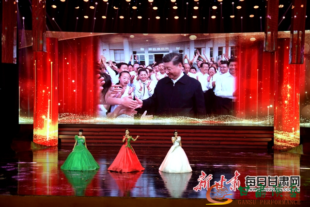 壯麗七十年,地覆天翻,唱不盡的頌歌,獻(xiàn)給映滿榮耀的神奇隴原;奮進(jìn)新時代,華彩蝶變,寫不完的祝福,獻(xiàn)給高質(zhì)量發(fā)展的炫彩隴原。整場演出綜合運(yùn)用音樂、舞蹈、配樂詩朗誦、情景表演、戲曲聯(lián)唱等舞臺手段,氣勢恢宏、震撼感人,贏得全場觀眾熱烈掌聲。