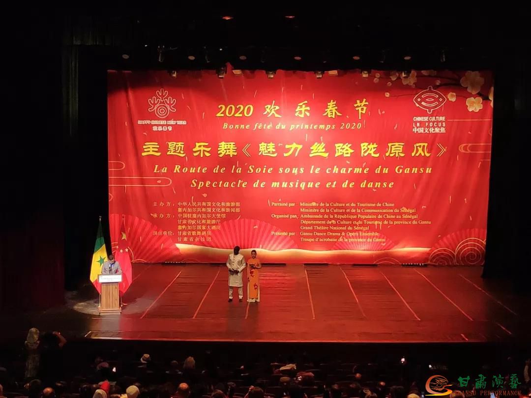 由中國文化和旅游部、塞內加爾文化和新聞部共同主辦,中國駐塞內加爾大使館與甘肅省文化和旅游廳共同承辦的2020年塞內加爾“歡樂春節(jié)”系列活動,在塞內加爾首都達喀爾連續(xù)演出3場,拉開了甘肅藝術團赴非洲塞內加爾、岡比亞、塞舌爾3國“歡樂春節(jié)”系列演出活動的序幕。