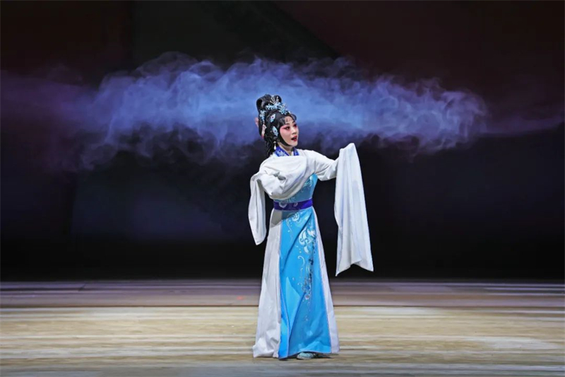 但凡愛折騰的藝術(shù)家,在創(chuàng)作上往往顯現(xiàn)出超乎常人的主動性。從《鎖麟囊》到《蔡文姬》,蘇鳳麗不是那種靜坐著等待安排的人。她是在確立了藝術(shù)目標之后,就會著了魔似地去琢磨它,追求完美的結(jié)果。所以,這樣的演員在舞臺上折騰出驚艷奪目的華彩篇章,實在順理成章的。讓我印象最深的是《蔡文姬》之第五場,歸漢的蔡文姬覺得有負丞相厚望,又難忍閑言冷語,心靈至暗的她,忽聞夫君左賢王的死訊……一個叫頭,揪心的琴弦驟然而起,引出蔡文姬“一聲夫君吐出唇”的大段唱腔。它由漸板起,轉(zhuǎn)入二導板……唱腔旋律在時緊時慢、時高時低、時斷時續(xù)的遷延與轉(zhuǎn)換中,如泣如訴地傾瀉著蔡文姬歸漢之后,積郁久矣的思念與惆悵。此時的蔡文姬“這個家,沒了!那個家,散了”,哀痛寂寥中,她頓覺自己似“渺渺天地一游魂”,不禁引起觀眾的深切共情。蘇鳳麗以她的聲腔塑造了蔡文姬的形象,一字一腔,一嘆一息,就像從心底里摳出來一樣,直抵觀眾的情感要害,聞者不覺淚下。其間“長叩關(guān)山淚作雨,云化白綾送知音……”,音域行走在云端,音色凄苦而飽滿,于悲痛中恪守著隱忍,始終不失蔡文姬身份和性格,堪稱彩腔苦音運用于角色性格的范例。