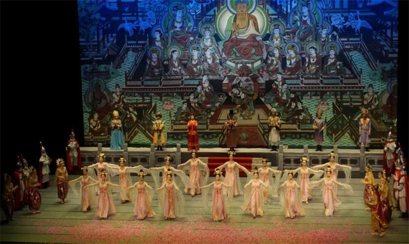 而今,甘肅省歌舞團(tuán),早已更名為甘肅省歌舞劇院;黃河劇院,早已改名為敦煌大劇院;《絲路花雨》的劇名未變,雖然演職人員換了十幾批,但她的劇情和藝術(shù)沒(méi)有變,她依然在復(fù)活著沉睡了千年的敦煌藝術(shù)與數(shù)千年的絲綢之路,開(kāi)啟著一條傳播中華文明的智慧之路。在新時(shí)期的征程上,我們又重祭陸上絲綢之路的雄風(fēng),重啟海上絲綢之路的遠(yuǎn)航,絲路花雨,飄飄揚(yáng)揚(yáng),紛紛飛飛,年年月月,永永遠(yuǎn)遠(yuǎn)……