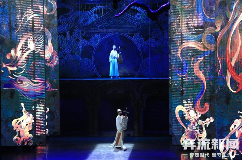 《樂動敦煌》是由中宣部支持,甘肅省委宣傳部策劃,甘肅演藝集團總監(jiān)制、出品的全球首部洞窟式沉浸體驗劇。作品溯源敦煌文化,借助對莫高窟壁畫、藏經洞古籍的深度解讀梳理,活化敦煌古樂器、古樂譜研發(fā)成果,采用全息投影、3D威亞等高科技手段,以全沉浸式的呈現(xiàn)方式,演繹了西域少年白氏追尋藝術的動人故事。