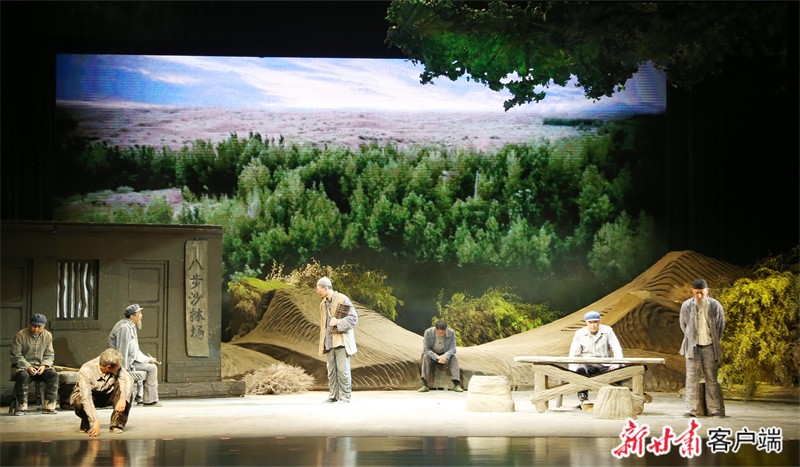 一段段飽含濃郁西北風(fēng)情的秦腔唱段,戲劇中性格各異、形象鮮明的人物塑造,串起了八步沙林場(chǎng)“六老漢”三代人治沙造林先進(jìn)群體的精神風(fēng)貌,描繪了一幅從“沙進(jìn)人退”到“綠進(jìn)沙退”的恢宏畫卷。