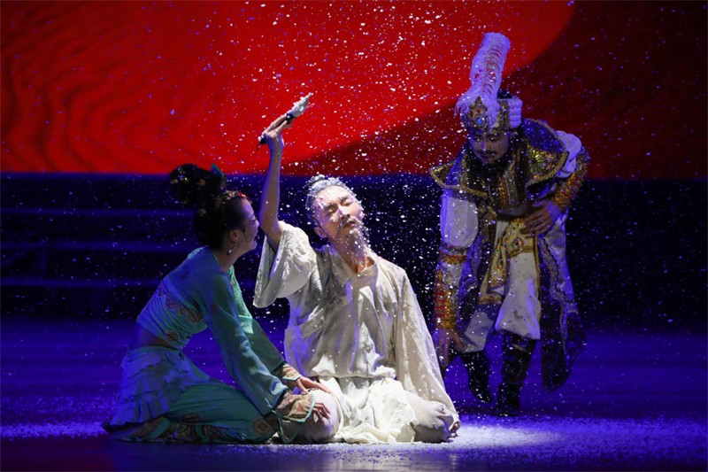 8月23日,演員在甘肅黃河劇院表演《絲路花雨》。新華社記者 馬希平 攝