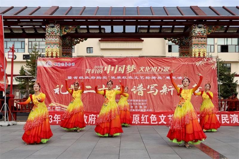 9月17日—18日,由中共甘肅省委宣傳部組織、甘肅省文化和旅游廳主辦,甘肅演藝集團(tuán)承辦,甘肅演藝集團(tuán)敦煌藝術(shù)團(tuán)演出的“我們的中國夢”文化進(jìn)萬家暨省級政府購買“隴原紅色文藝輕騎兵”惠民演出在瑪曲縣格薩爾廣場和阿萬倉鎮(zhèn)上演,約800余名干部群眾在現(xiàn)場欣賞視覺盛宴。