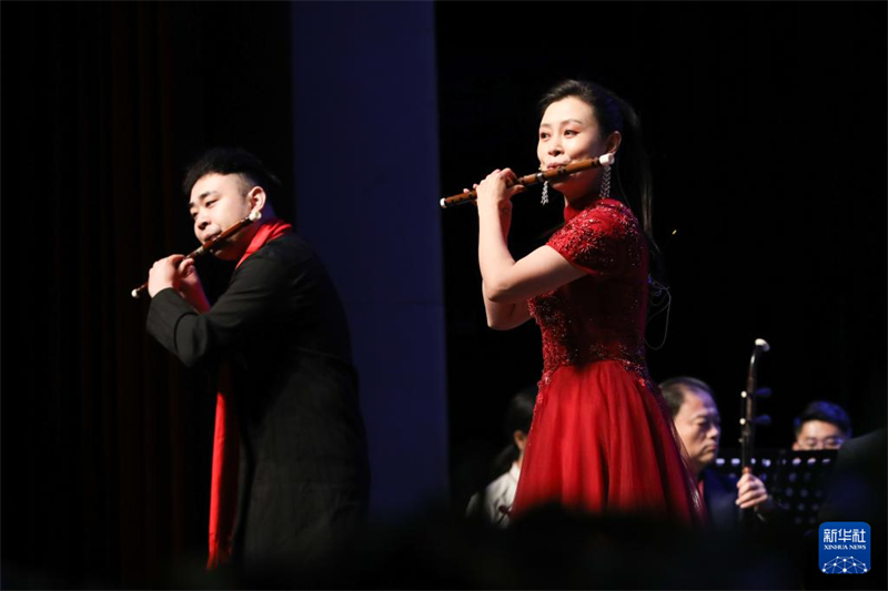 2月3日晚,在甘肅黃河劇院,演奏家在2024年新春音樂(lè)會(huì)《隴上國(guó)樂(lè)》中表演。新華社記者 馬希平 攝