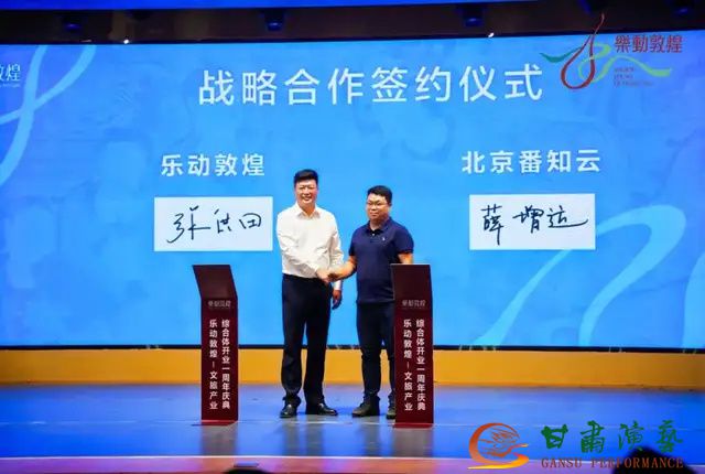 當(dāng)天下午,青島演藝集團(tuán)與甘肅演藝集團(tuán)進(jìn)行戰(zhàn)略簽約,甘肅衛(wèi)視、北京番知科技有限公司與動(dòng)敦煌(敦煌)文化旅游產(chǎn)業(yè)發(fā)展有限公司進(jìn)行戰(zhàn)略簽約,以此加強(qiáng)文旅行業(yè)各領(lǐng)域?qū)勇?lián)動(dòng),共同助推文旅行業(yè)高質(zhì)量發(fā)展。