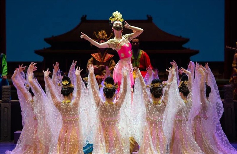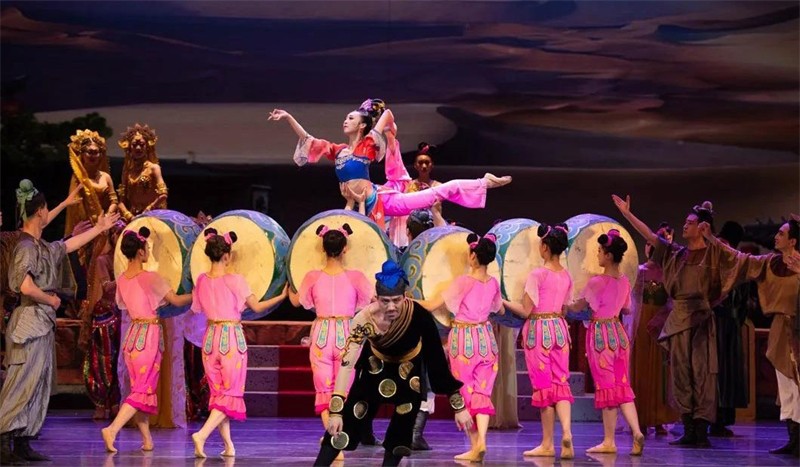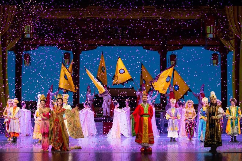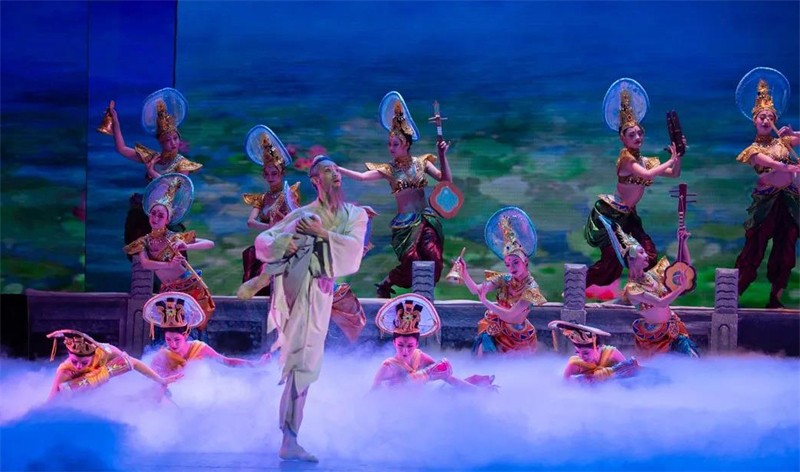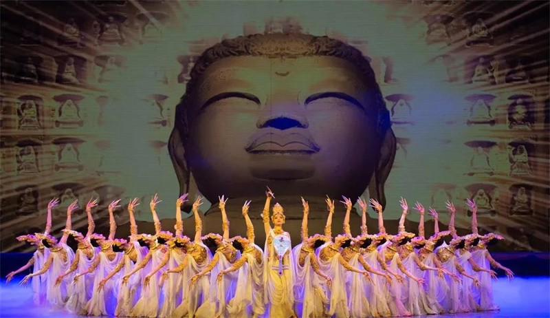 三危山萬佛呈祥,莫高窟圣光普照,琵琶伎樂、捧花飛天,播灑著祝福與吉祥的花雨,敘述著久遠而動人的故事……