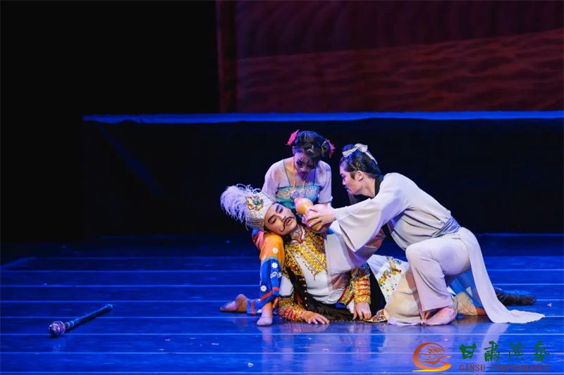 作品溯源敦煌文化,借助對(duì)莫高窟壁畫、藏經(jīng)洞古籍的深度解讀梳理,活化敦煌古樂(lè)器、古樂(lè)譜研發(fā)成果,采用全息投影、3D威亞等高科技手段,以全沉浸式的呈現(xiàn)方式,演繹了西域少年白歆追尋藝術(shù)的動(dòng)人故事。