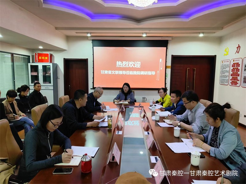 6月2日上午,甘肅省文聯(lián)黨組成員、副主席王正茂,甘肅省文聯(lián)人事處處長楊東英、甘肅省文聯(lián)文藝理論研究室主任劉云鵬、甘肅省文聯(lián)文藝創(chuàng)作傳播中心副主任王安民、甘肅省文聯(lián)人事處二級主任科員張淑萍一行到甘肅演藝集團秦腔藝術劇院開展調(diào)研工作,考察劇院發(fā)展及人才培養(yǎng)相關工作情況。劇院班子成員陪同。