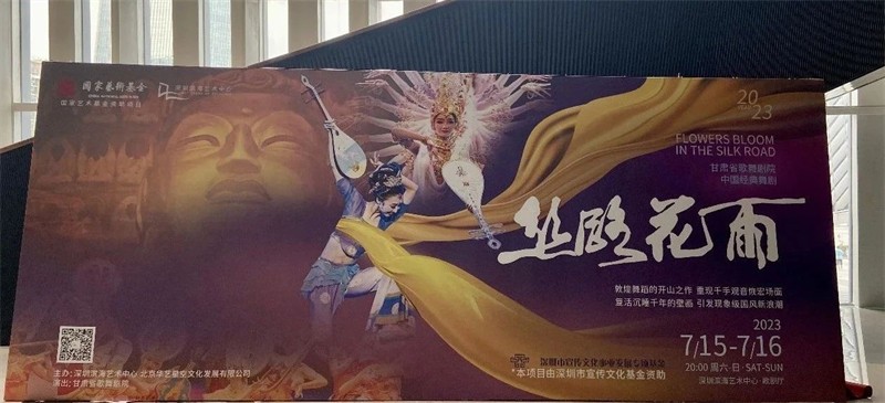 7月15日,甘肅演藝集團歌舞劇院攜中國經(jīng)典舞劇《絲路花雨》在深圳濱海藝術(shù)中心燃情起舞,與鵬城觀眾一起夢回千年敦煌。
