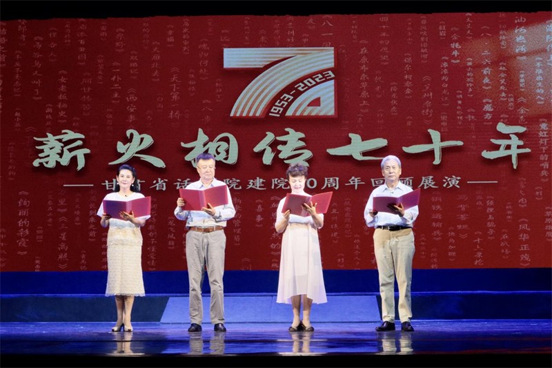 慶典伊始,甘肅省文聯(lián)黨組書記、主席王登渤同志,為甘話70周年致辭講到,一代代“甘話”文藝工作者積極投身火熱的現(xiàn)實(shí)生活和文藝實(shí)踐,創(chuàng)作生產(chǎn)出一大批弘揚(yáng)社會(huì)主義核心價(jià)值觀、傳遞正能量、深受人民群眾喜愛的優(yōu)秀話劇作品,譜寫了我省文藝事業(yè)繁榮發(fā)展的新篇章。70年不是終點(diǎn),而是新的征程,希望“甘話”人繼續(xù)秉承特有的精神,薪火相傳,堅(jiān)持守正創(chuàng)新、勇攀文藝高峰,為全面建設(shè)社會(huì)主義現(xiàn)代化幸福美好新甘肅貢獻(xiàn)力量。