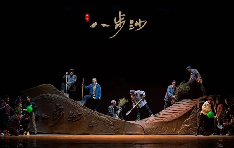 話劇《八步沙》根據(jù)中宣部命名的“時(shí)代楷?!焙汀白蠲缞^斗者”榮譽(yù)稱號(hào)獲得集體——甘肅武威古浪八步沙“六老漢”三代人治沙造林先進(jìn)群體真實(shí)事跡創(chuàng)作,以舞臺(tái)藝術(shù)生動(dòng)再現(xiàn)了八步沙“六老漢”治沙造林的感人事跡。話劇《八步沙》充分發(fā)揮話劇藝術(shù)直面現(xiàn)實(shí)生活書寫時(shí)代風(fēng)采的優(yōu)勢(shì),既有生動(dòng)感人的故事,又有詼諧幽默的笑點(diǎn),更不乏令人感動(dòng)的“淚點(diǎn)”,生動(dòng)地表現(xiàn)了“六老漢”創(chuàng)造幸福人生,追尋探究人生價(jià)值的真諦。