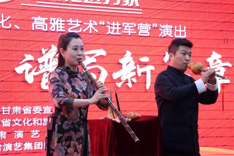 本年度文化惠民進軍營演出活動走進了中國人民解放軍78156部隊、甘肅省森林消防總隊等地,演出小分隊攜精心編排的節(jié)目與官兵們度過了賞心悅目的愉快時光,加強了軍民深度融合,豐富和活躍了軍營文化生活,唱響了雙擁文化主旋律,充分展示了“和諧共建”的新成效和軍愛民、民擁軍、軍民魚水一家親互助互愛的優(yōu)良傳統(tǒng)。