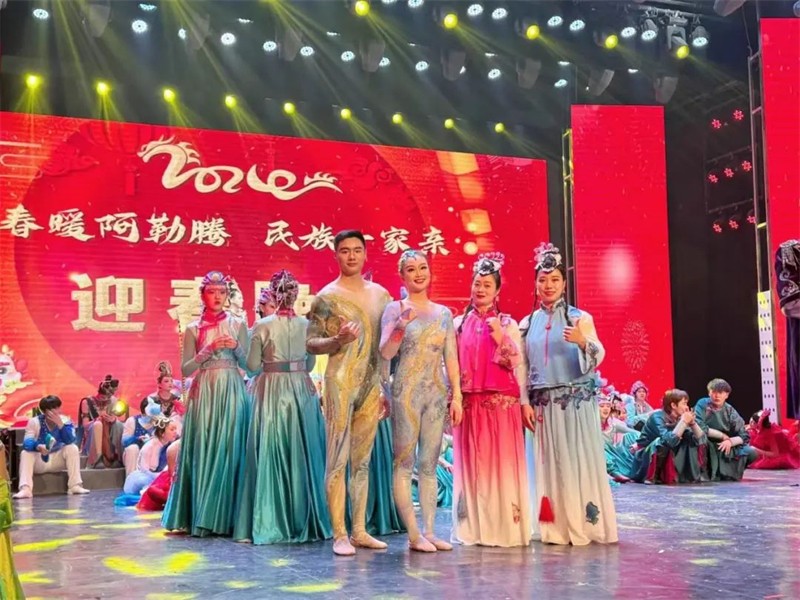 整場迎春晚會展現(xiàn)著民族大團(tuán)結(jié)精神,反應(yīng)著人們欣欣向榮的美好生活。敦煌藝術(shù)團(tuán)的演職員將美好的記憶留給阿克塞的父老鄉(xiāng)親,同時也鞭策著我們在今后的創(chuàng)作演出中,更加貼近人民,貼近生活。用更多的藝術(shù)精品回報觀眾。