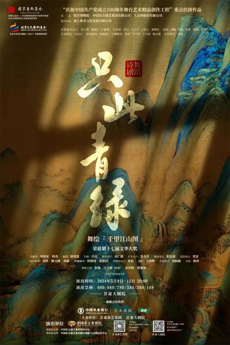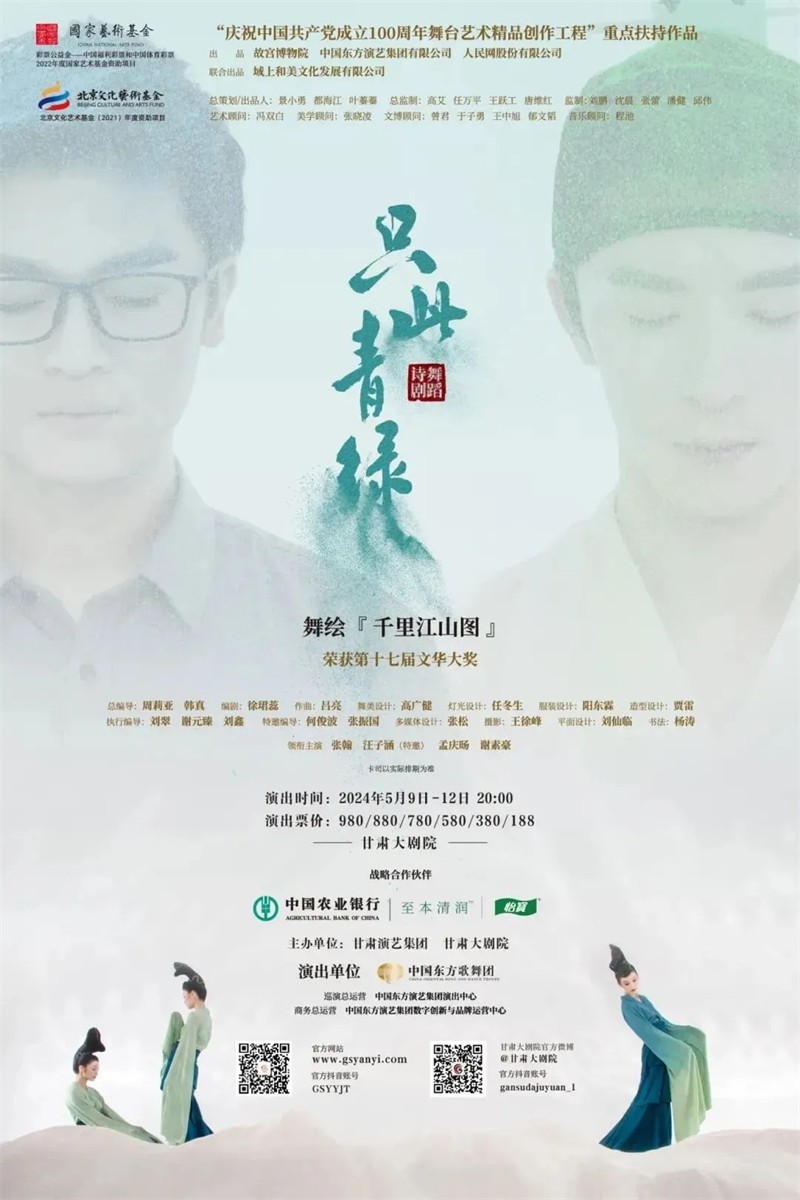 由甘肅演藝集團(tuán)與甘肅大劇院聯(lián)合主辦的舞蹈詩劇《只此青綠》——舞繪《千里江山圖》蘭州站演出,即將在甘肅大劇院精彩上演。本次演出由中國東方歌舞團(tuán)傾情演繹,故宮博物院、中國東方演藝集團(tuán)有限公司、人民網(wǎng)股份有限公司共同出品,域上和美文化發(fā)展有限公司聯(lián)合出品。