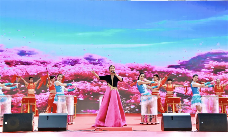 演出現(xiàn)場人潮涌動,鼓音律動,鏗鏘激昂,在《炫鼓飛揚·錦繡前程》中,演出拉開帷幕,京胡獨奏《夜深沉》、女子樂坊《中國名曲聯(lián)奏》曲調(diào)優(yōu)美動聽,歌曲《有你相隨》《火紅的薩日朗》《中國字畫》《蘆花》等唱出了共產(chǎn)黨人身體力行為民服務(wù)的初心和使命,唱出了人民生活幸福,文化蓬勃發(fā)展的和諧景象,別具韻味的敦煌舞《反彈琵琶·長綢舞》 ,中國經(jīng)典舞劇《絲路花雨》片段《霓裳羽衣舞》也紛紛亮相,為群眾帶來一場聲色俱佳的文化盛宴,在舞蹈《繁花似錦》中,演出圓滿落幕。臺上精彩節(jié)目輪番登場,好戲不斷,臺下觀眾掌聲一片,叫好聲連連。