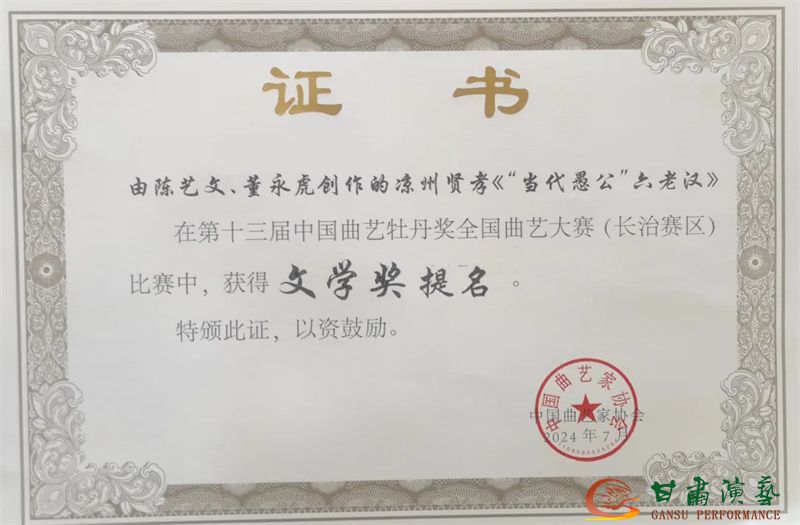 7月29日,由中國文學(xué)藝術(shù)界聯(lián)合會(huì)、中國曲藝家協(xié)會(huì)、山西省文學(xué)藝術(shù)界聯(lián)合會(huì)、長治市人民政府主辦,中共長治市委宣傳部承辦的第十三屆中國曲藝牡丹獎(jiǎng)全國曲藝大賽(長治賽區(qū))開賽。中國曲藝牡丹獎(jiǎng)是全國性曲藝專業(yè)最高獎(jiǎng),長治賽區(qū)潞州劇院參賽節(jié)目主要為北方鼓曲唱曲類節(jié)目,在連續(xù)兩天4場的曲藝大賽中,來自全國14個(gè)省份的曲藝名家新秀,帶著新創(chuàng)的單弦、二人轉(zhuǎn)、東北大鼓、京韻大鼓、長子鼓書、潞安大鼓、樂亭大鼓、西河大鼓、河南墜子、陜北說唱、涼州賢孝、皋蘭小曲、山東琴書等29個(gè)曲種47個(gè)節(jié)目,同臺(tái)競逐節(jié)目獎(jiǎng)、表演獎(jiǎng)、文學(xué)獎(jiǎng)和新人獎(jiǎng)。甘肅演藝集團(tuán)敦煌藝術(shù)團(tuán)共有2個(gè)鼓曲節(jié)目,入圍本屆長治賽區(qū)全國曲藝大賽,涼州賢孝《當(dāng)代愚公六老漢》、皋蘭小曲《憶黨史·銘黨恩》是首次入選參加全國性曲藝專業(yè)最高獎(jiǎng)“牡丹獎(jiǎng)”大賽。
